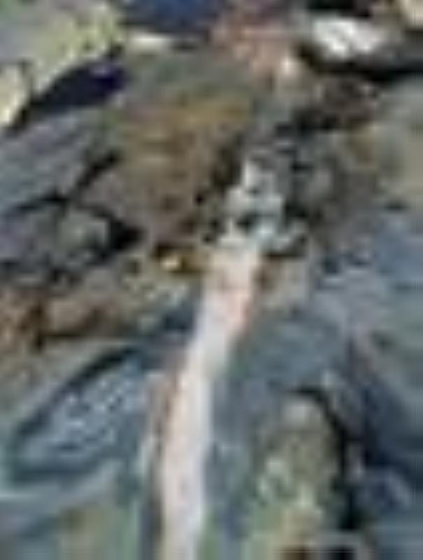 | Ein schmales Quarzband durchzieht diesen Monolith. |